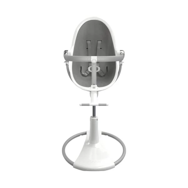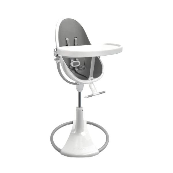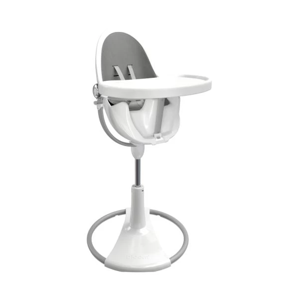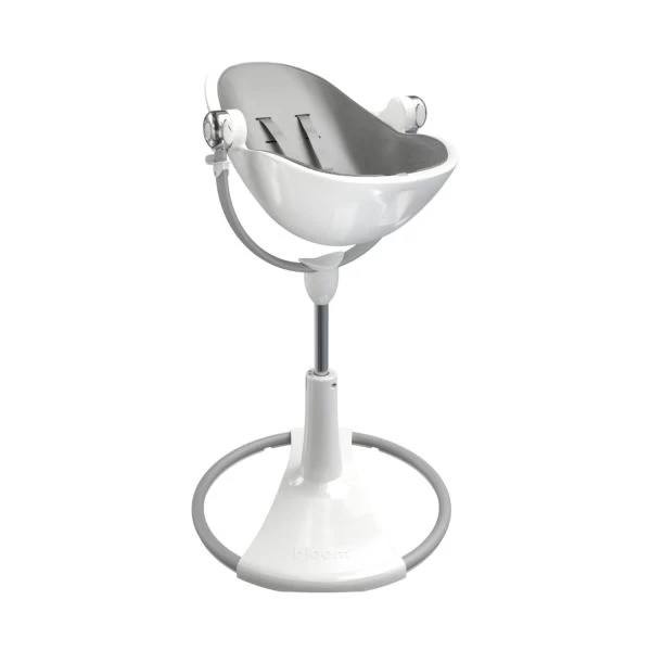 Der strahlend weiße Bloom Fresco Chrom Weiß / Grau Komplett verfügt über eine farbenfrohe Polsterung in einer Farbe deiner Wahl. So hast du immer einen Kinderstuhl, der gut zu deinem Interieur passt.
