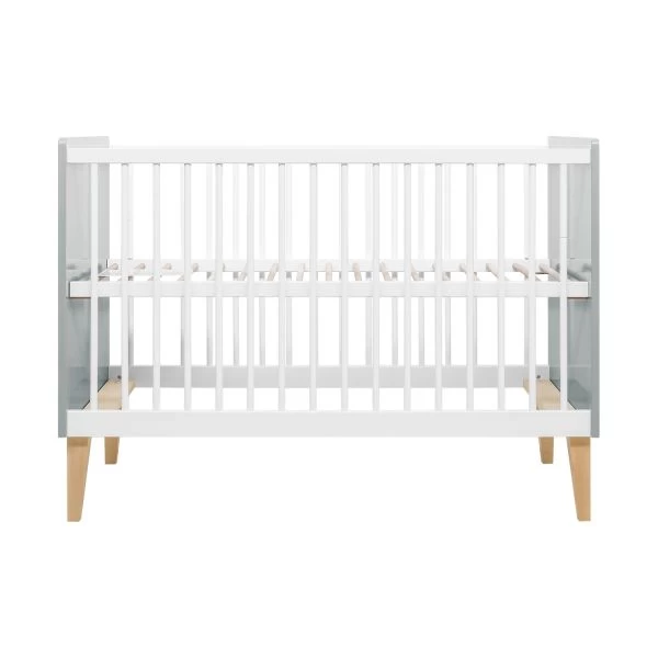 Das Bopita Emma Babybett Weiß / Grau 60 x 120 cm ist ein schönes Bett mit einem zeitlosen Design. Die Seiten des Bettes sind mit weißen Rundstäben versehen und die Fronten sind in der Farbe Grau gehalten. Der Bettboden dieses Babybettes ist höhenverstellbar und bietet dadurch zusätzliche Sicherheit. Dieses Babybett ist aus hochwertigem MDF gefertigt und mit einem Finish aus wasserbasiertem Lack versehen.