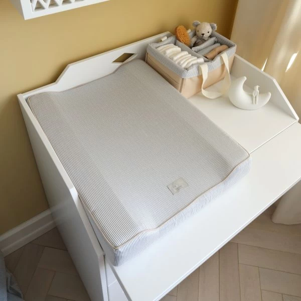 Mit dieser Cam Cam Copenhagen Classic Stripes Wickelunterlage – Blue liegt dein Kind sehr bequem, wenn es angezogen oder ihm die Windel gewechselt werden muss. Die Wickelunterlage verfügt über erhöhte Ränder, sodass dein Baby sicher in der Mitte der Unterlage liegenbleibt. Ein Wickelunterlagenbezug ist im Lieferumfang enthalten. Dank der wasserabweisenden Beschichtung ist die Wickelunterlage vor kleinen Unglücken geschützt, während du deinem Kind die Windel wechselst. Zudem ist die Unterlage aus hochwertigem Material gefertigt und der Bezug kann einfach in der Waschmaschine gewaschen werden, wenn er schmutzig geworden ist.