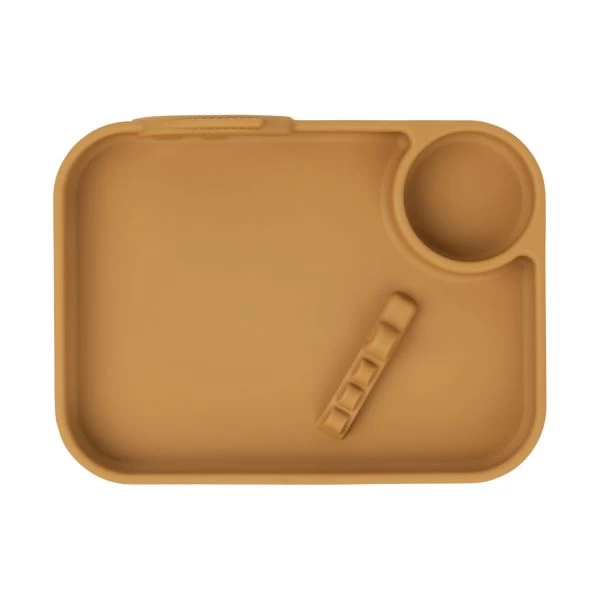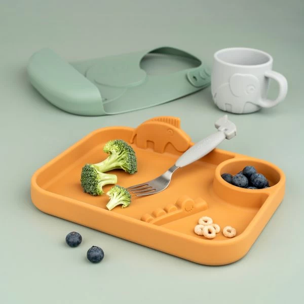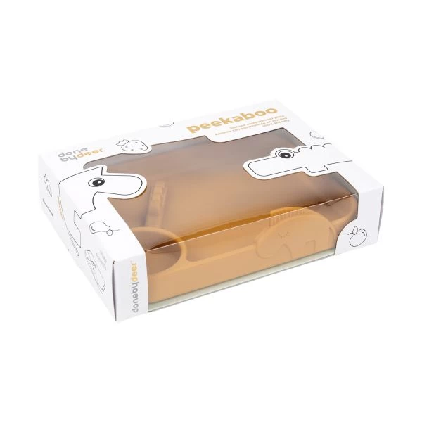 Der stylische Done by Deer Peekaboo Friends Teller Mustard ist ein Teller mit verschiedenen Fächern, damit du die Speisen trennen kannst. Der Teller besteht aus 100 % Silikon, wodurch er rutschfest ist und sich daher nicht leicht vom Tisch schieben lässt. Da er flexibel ist, bricht er nicht so leicht. Der Teller hat drei Fächer, in denen verschiedene Speisen serviert werden können. Es ist ein sehr praktischer Teller, der deinem Kind hilft, selbstständig zu essen.
