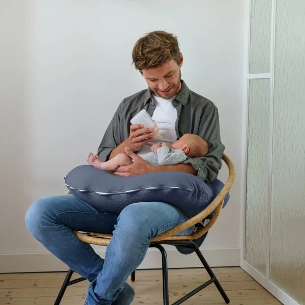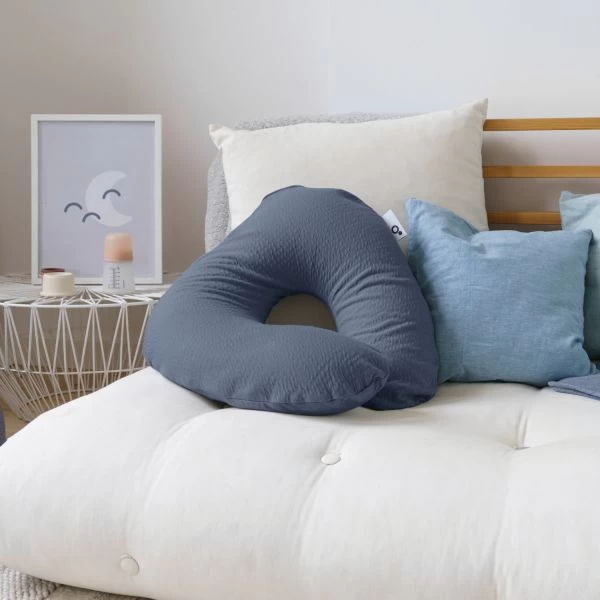 Ein multifunktionales Doomoo-Kissen für Baby und Mutter. Das Doomoo Softy Tetra Stillkissen Blue lässt sich einfach um die Taille der Mutter legen, was ideal beim Stillen oder Fläschchen ist. Das Baby fühlt sich im Kissen sowohl liegend als auch sitzend angenehm gestützt. Die Unterstützung sorgt für Ruhe und Entspannung für Mutter und Kind. Das Kissen ist mit Mikrofasergranulat gefüllt und mit einem Baumwollbezug umgeben. Der Bezug kann vom Kissen abgenommen werden und ist maschinenwaschbar.
