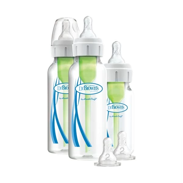 Mit diesem Dr. Brown’s Starterpaket bist du erstmal für eine Weile gut bedient. Dieses Paket enthält drei Standardfläschchen mit unterschiedlichen Milliliter-Volumen und Saugern. Die Fläschchen verfügen über ein Ventilsystem, durch das weniger Luft beim Trinken eindringt und die Bauchkrämpfe verringert werden.