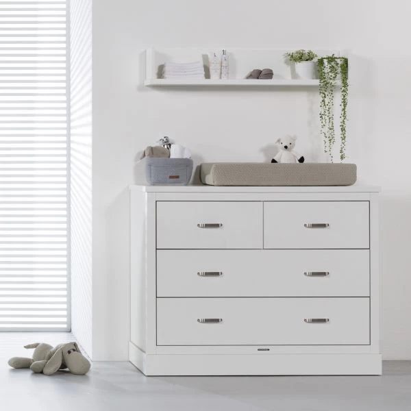 Hast du dich dafür entschieden, das Kinderzimmer mit Möbeln aus der Newport Serie zu dekorieren? Dann ist dieses Wandregal ein unverzichtbarer Bestandteil. Normalerweise wird das Wandregal über der Kommode montiert, es kann aber natürlich auch an einer anderen Stelle angebracht werden. Beim Festlegen der Höhe ist darauf zu achten, dass dein Kind die Gegenstände, die auf dem Wandregal platziert werden, nicht erreichen können sollte.