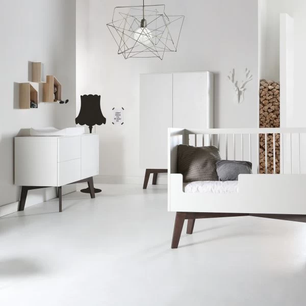 Der Sixties Wäscheschrank ist stilvoll und sehr praktisch für fast alle Eltern. Die Türen sind mit dem „Push Open“-System ausgestattet. Man drückt einmal auf die Tür oder Schublade und diese öffnet sich von selbst. Der Schrank ist aus hochwertigem MDF-Material und die dunklen Beine sind aus Eichenholz gefertigt. Im Inneren des Schranks befinden sich 4 Fächer und eine Stange, an der die Kleidung deines Kindes aufgehängt werden kann.