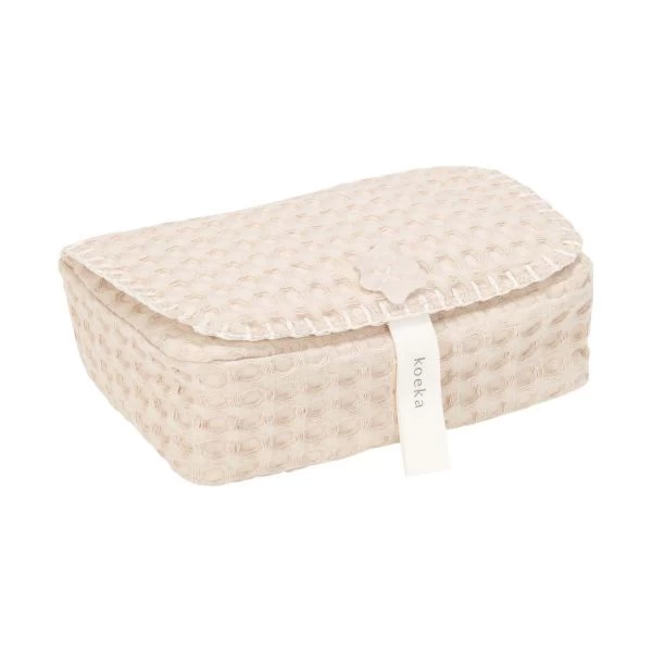 Die Koeka Antwerp Reinigungstuchetui Sand ist ideal für unterwegs oder im Babyzimmer. In der Hülle kannst du feuchte Baby- und Wischtücher aufbewahren und überall hin mitnehmen. Die stilvolle Hülle ist aus hochwertigem Material mit Waffelmuster gefertigt. Diese Box kann mit einem Klettverschluss verschlossen werden, um ein Austrocknen der Tücher zu verhindern. Darüber hinaus sorgt die spezielle Öffnung dafür, dass immer das nächste Tuch erscheint.