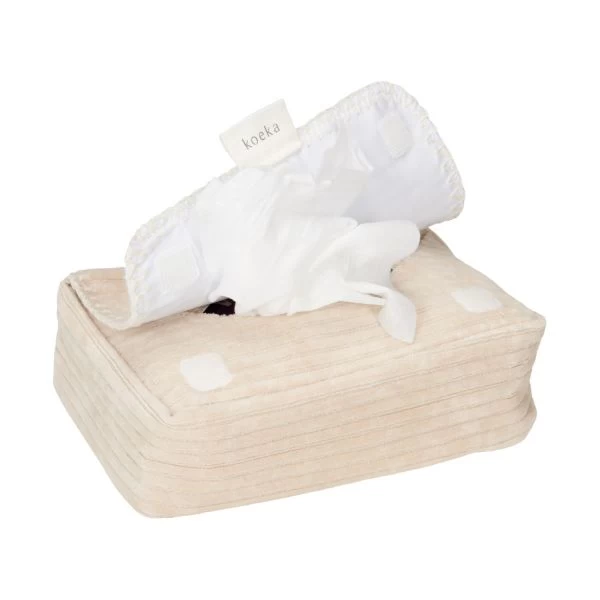 Die Koeka Vik Reinigungstuchhülle Sand ist ideal für unterwegs oder im Babyzimmer. In der Hülle kannst du feuchte Baby- und Wischtücher aufbewahren und überall hin mitnehmen. Die stilvolle Hülle ist aus hochwertigem Material mit einer natürlichen Struktur gefertigt. Diese Box kann mit einem Klettverschluss verschlossen werden, um ein Austrocknen der Tücher zu verhindern. Darüber hinaus sorgt die spezielle Öffnung dafür, dass immer das nächste Tuch erscheint.
