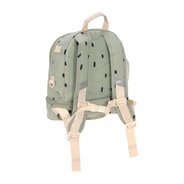 Mit dem Laessig Happy Prints Rucksack Light Olive bist du bestens ausgestattet, wenn du mit deinem Kind raus gehst. Der Rucksack bietet viel Stauraum, darunter ein großes Hauptfach, eine separate Seitentasche für eine Trinkflasche und ein großes Fach am Boden, in dem du beispielsweise eine Brotdose verstauen kannst. Außerdem hat der Rucksack einen Patch mit Animal-Print, der ihm einen süßen Look verleiht. Der Rucksack hat auch ein Namensschild auf der Innenseite. Sehr praktisch! Außerdem ist der Rucksack aus hochwertigem Material gefertigt und lässt sich an den verstellbaren Schultergurten oder der großen Schlaufe bequem mitnehmen.