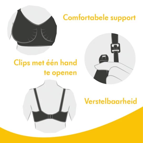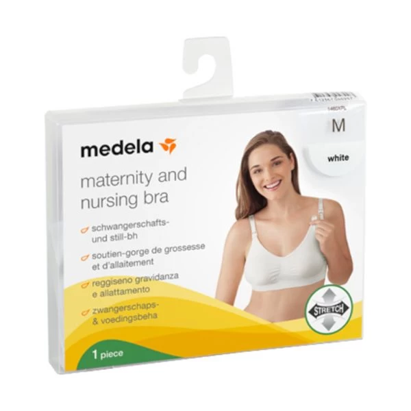 Der Medela Still-BH Weiß S ist ein Stretch-BH speziell für die Schwangerschaft und die Stillzeit. Der dehnbare Stoff passt sich deinen Formen an und wächst mit dir mit. Gleichzeitig bietet der BH einen guten Halt. Dank des BHs kannst du auf eine praktische und diskrete Art und Weise dein Baby überall stillen! Die Clips über den Cups können einfach geöffnet und wieder geschlossen werden. Außerdem sitzt der BH besonders komfortabel, da er keine Nähte oder Bügel hat.