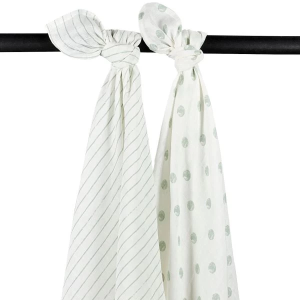 Meyco Swaddle Pucktuch- Dot Stripe – Soft Green – 2 Stück