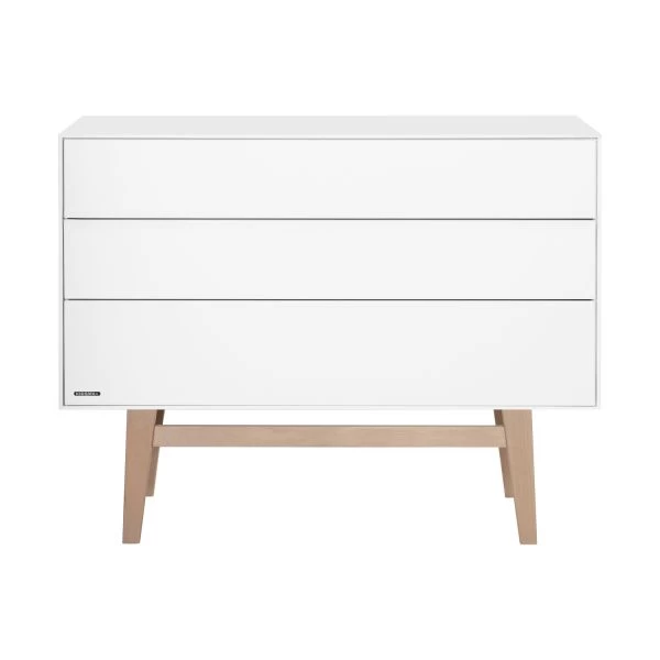 Mit der Kidsmill Noud Kommode Weiß bringst du Stil in dein Zuhause. Die Beine in Naturfarbe machen der Kommode zu einem echten Hingucker! Mit drei Schubladen bietet die Kommode ausreichend Platz für beispielsweise Pflegeprodukte und Windeln. Dank des “Push-Open”-Systems kannst du die Schubladen leicht öffnen. Da die Kommode mit Soft Closing ausgestattet ist, kannst du die Schubladen und Tür wieder leise schließen. Dank der großen Wickeloberplatte kannst du dein Kind problemlos wechseln. Weiterhin ist die Kommode aus robustem Material gefertigt und entspricht die europäischen Sicherheitsanforderungen. Auch passt die Kidsmill Noud Kommode perfekt zu den anderen Möbeln der Serie.