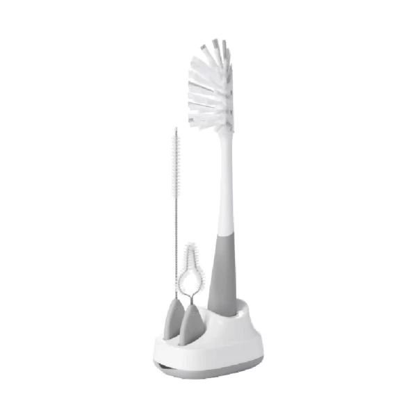 Das OXO Tot Flaschenbürste Set sollte in der Küche nicht fehlen, um die Trinkflaschen deines Kindes zu reinigen. Darüber hinaus eignet sich die Flaschenbürste auch zur hygienischen Reinigung von Flaschensaugern, Pumpen- und Fütterungszubehör. Die weichen und rauen Borsten in ergonomischer Form sorgen dafür, dass du auch schwer zugängliche Stellen mühelos erreichen. Außerdem enthält das Set zwei Bürsten für tiefe Flaschen, Ausgießer und Sauger. Die Flaschenbürste kann aufrecht in der Halterung aufbewahrt werden. Dadurch trocknet die Bürste schnell mit minimalem Bakterienrisiko.