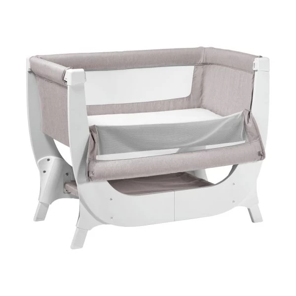 Das Shnuggle Beistellbett ist in 7 verschiedenen Höhen verstellbar, so dass es sich jeder Betthöhe anpasst. Die Hauptseite kann höher als das Fußende sein, so dass dein Baby z.B. erhöht liegt, wenn es unter Reflux leidet. Die Seite kann geöffnet werden, so dass man das Baby leicht zum Stillen oder zum Kuscheln herausnehmen kann.