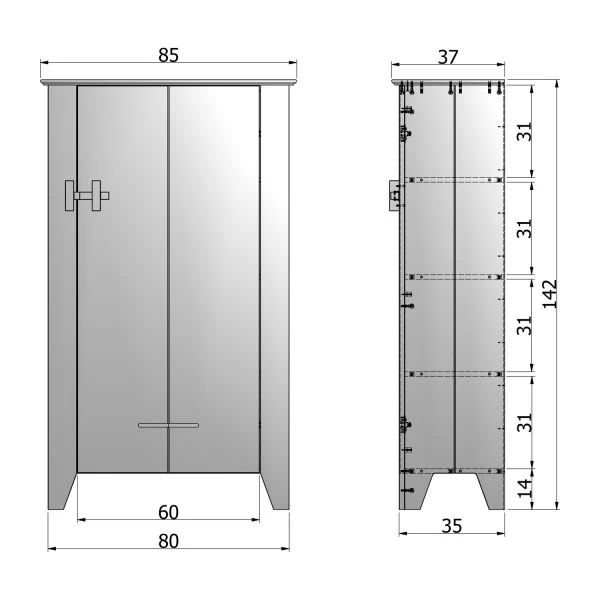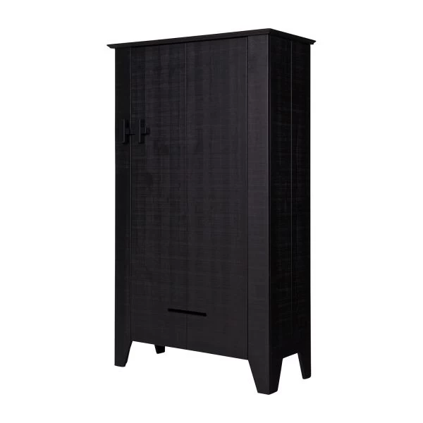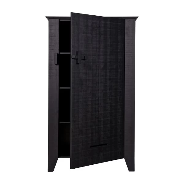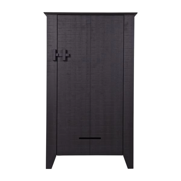 Der Gijs Bauernschrank von Woood hat einen robusten Look und ist grob gesägt verarbeitet. Hinter der Tür befinden sich vier Regalbretter, die für den notwendigen Stauraum sorgen, sodass es im Zimmer immer aufgeräumt bleibt. Durch seine raue Verarbeitung erhält das Möbelstück einen durchlebten Vintage-Look zu dem kleine Risse und Unebenheiten dazugehören. Aufgrund dieser Eigenschaften ist jedes Exemplar einzigartig. Die Schranktür wird über einen Riegel geschlossen, was typisch für einen Bauernschrank ist. Der Raum, im den dieser wunderschöne Bauernschrank steht, bekommt so einen ländlichen Vintage-Look.